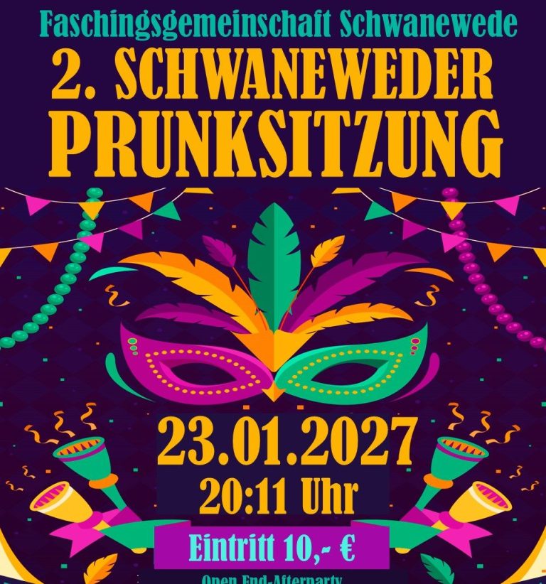 Nach der gelungenen diesjährigen Premiere mit unserer 1. Schwaneweder Prunksitzung folgt im Jahr 2027 die Fortsetzung im Meyenburger Doorphus
